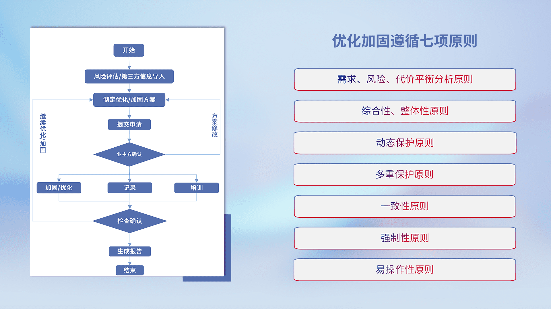 通过专业的法律咨询解读、、、合规架构体现、、差异化解决方案、、、、测试实施支持等服务,,为客户量身打造等保合规体系。。。